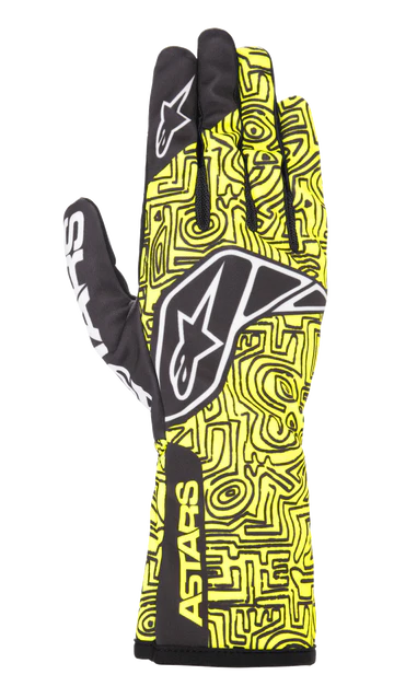 This lightweight Tech-1 K V2 kart glove features a new construction of polyester bonded with polymesh to offer superb levels of durability, comfort, fit and feel. With internal seams and synthetic suede leather on the palm to allow for excellent levels of comfort, feel and grip. There are mesh fourchettes on one half of the fingers and lycra on the other half for the perfect blend of ventilation, flexibility and comfort. A silicon surface treatment on the palm and fingers for improved flexibility and control. Also equipped with Alpinestars open cuff design with a 180° elasticated wrist for easy entry and a secure fit. Touch compatible print on thumb and index fingers for using mobile devices while at the track.
