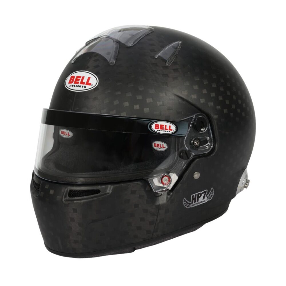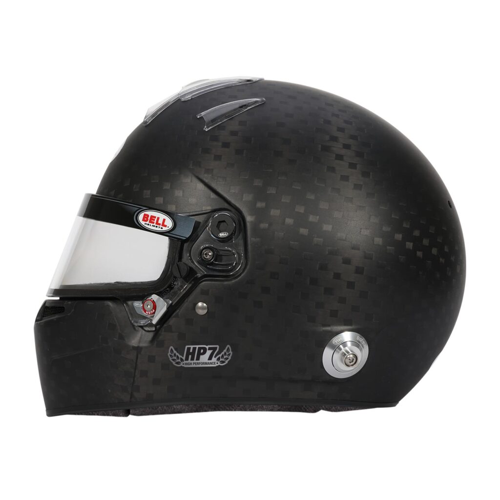 Bells’ HP7 EVO IV – 8860-2018. Developed through close collaboration with leading F1 drivers and teams, the carbon fiber HP7 is aerodynamically sleek, lightweight and efficient for the intense demands of open-wheel and open-cockpit forms of racing. The updated Bell HP7 EVO-IV meets the FIA’s FIA8860-2018 “super helmet” standard, the most advanced sport helmet standard in the world. Designed for professional drivers competing in high-speed forms of motorsports, the Bell HP7 allows racers to take advantage of the latest technological innovations including aerospace composite materials and advanced energy absorbing liner systems.