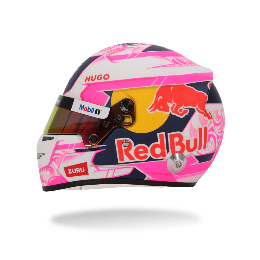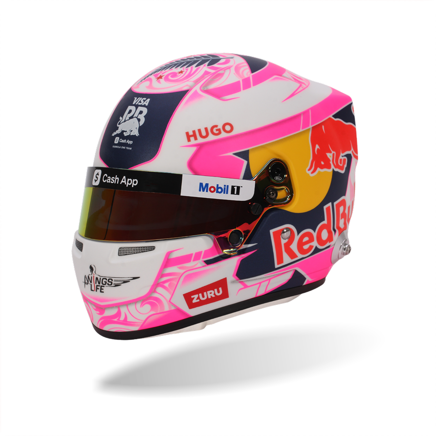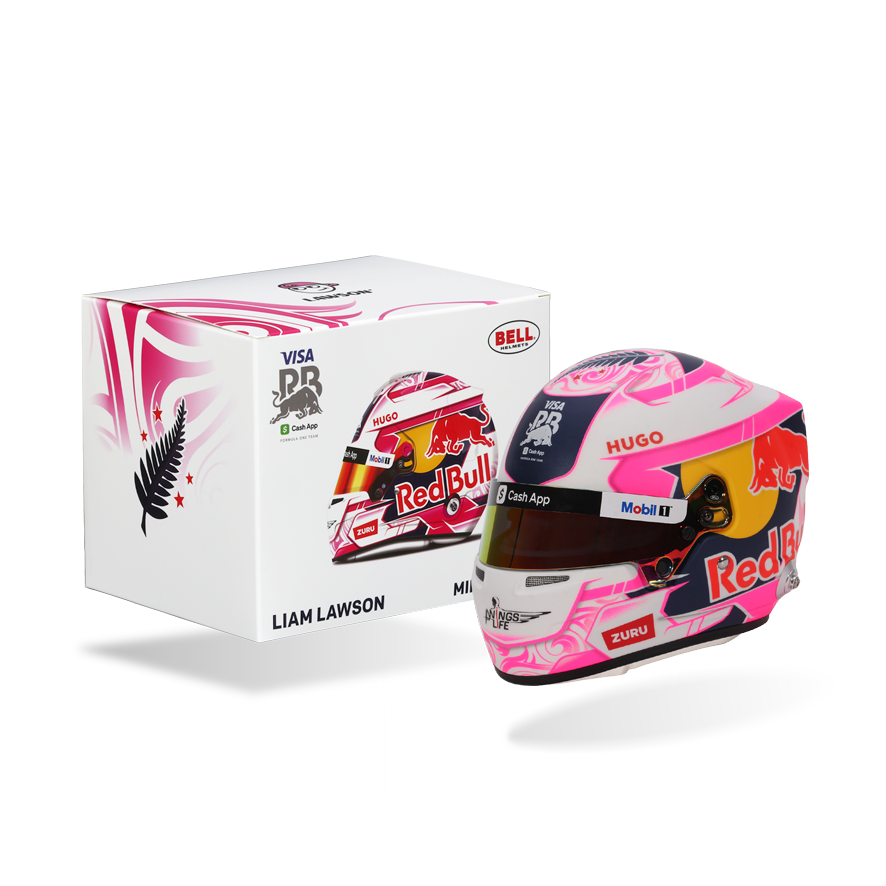 With one of the most distinctive designs on the 2025 Formula 1 grid, Liam Lawson’s helmet makes a statement with its vibrant pink and white livery – a modern tribute to his New Zealand roots. From Maori-inspired motifs to the iconic silver fern and Southern Cross stars of the national flag, every element reflects a deep bond with his homeland. This helmet doesn’t just stand out – it proudly continues the legacy of Kiwi drivers competing at the pinnacle of motorsport. There is high-quality detailing around the HANS device clips, adjustable visor and chin straps.